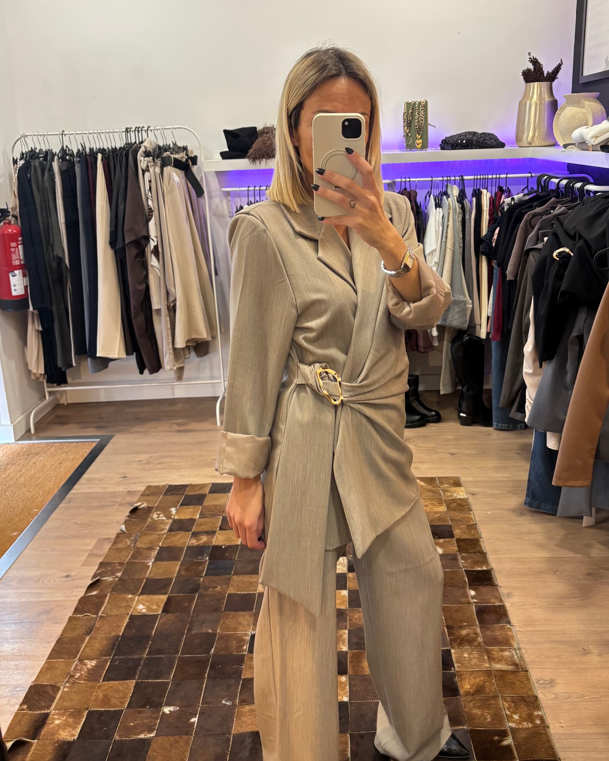 • Blazer: Design cruzado com cinto ajustável e fivela metálica para um toque sofisticado.